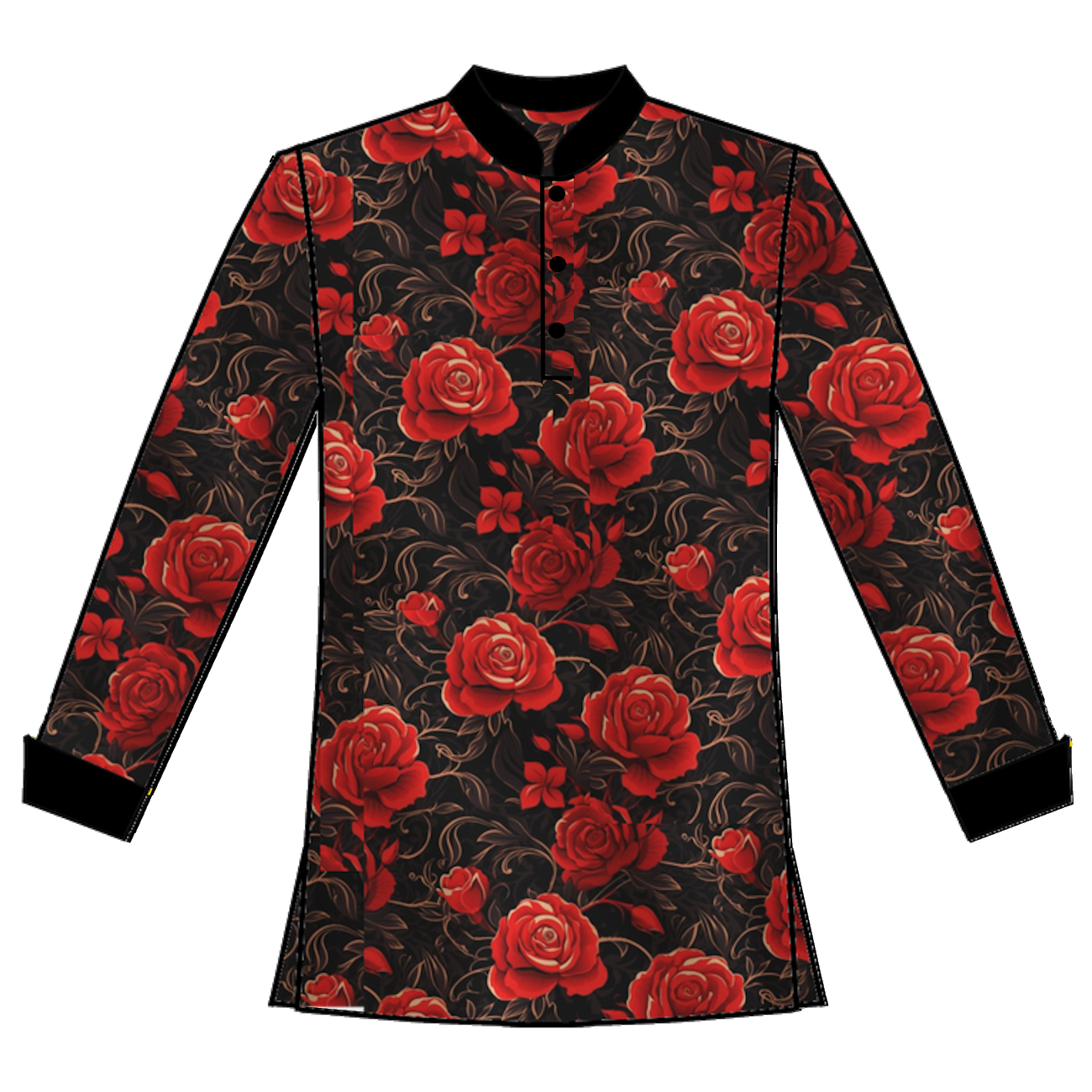 179- Rose Print with Black Collar and Cuffs
