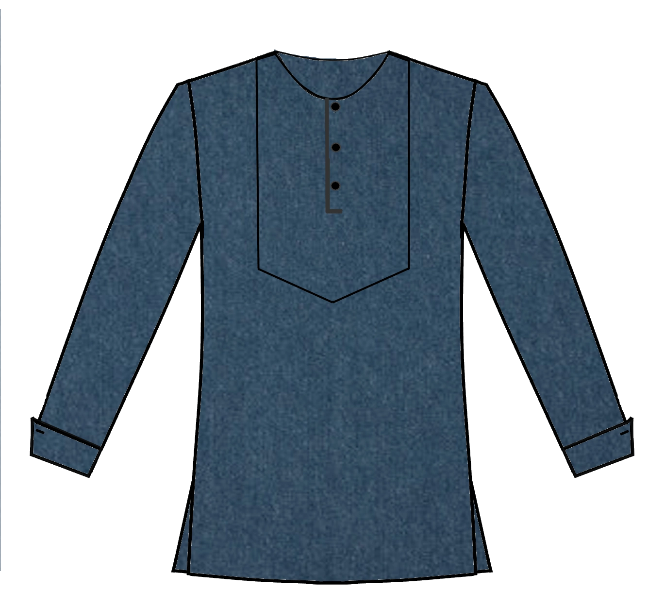 155-Denim Yoke Front *Placket front open *Side splits *100% Cotton