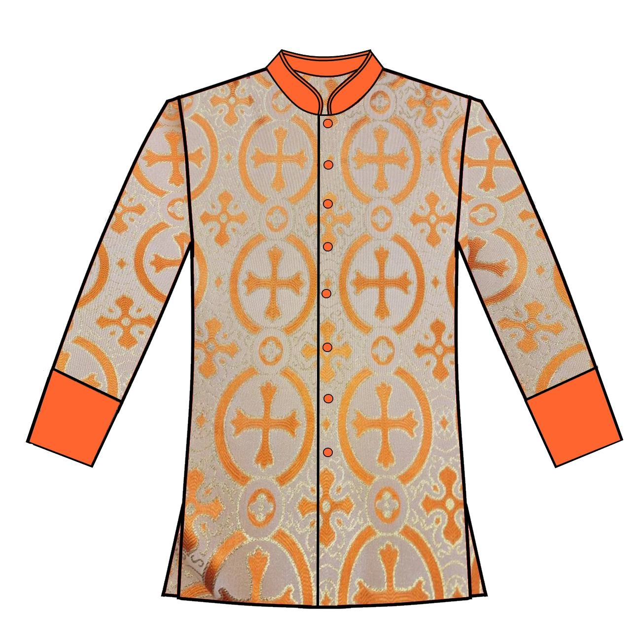 251- Orange Brocade *Button front *orange cuffs and collar *Polyester