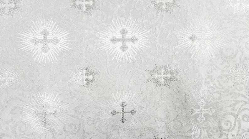 602-White Brocade with Satin Trim